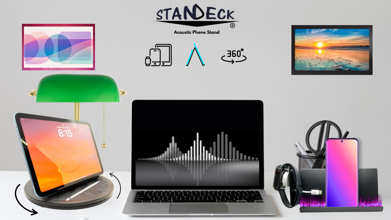 STANDECK 2 Pack Acoustic Cell Phone Stand and Tablet Holder Plus One 360° Turntable for Optimal Viewing. for iPhone, IPad, Samsung Galaxy -Ultra-Stable Design - Wont TIP Over -